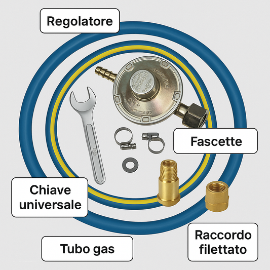 Regolatore Gas 30 mbar + Tubo Gas GPL 8x13 mm 10 mt Blu - Lemag srl