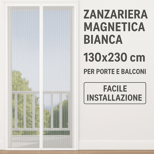 Zanzariera Magnetica Bianca 130x230 cm per Porte e Balconi, Facile Installazione