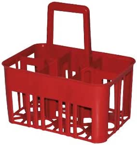 Cestello Portabottiglie Plastica 6 Posti Manico Centrale Robusto Colore Rosso