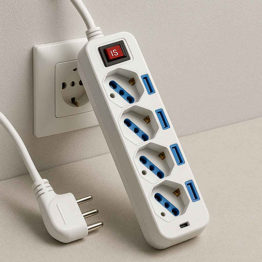 Multipresa 4 prese 10/16A + Schuko con interruttori indipendenti, spina 16A